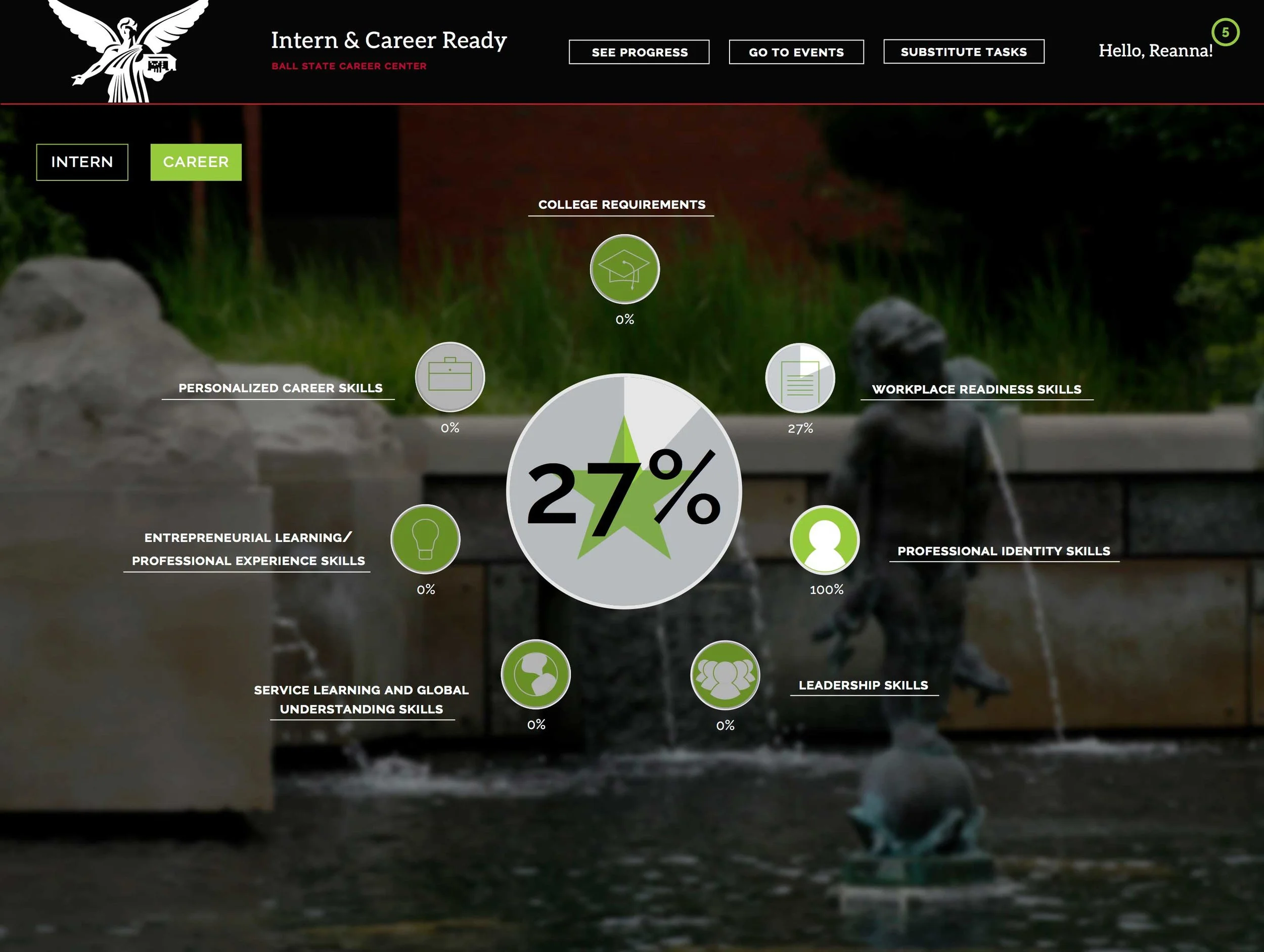 I was lead designer for Ball State University's Career Center website for the Intern and Career-Ready program. I worked collaboratively with design, user experience, communication, and development students.